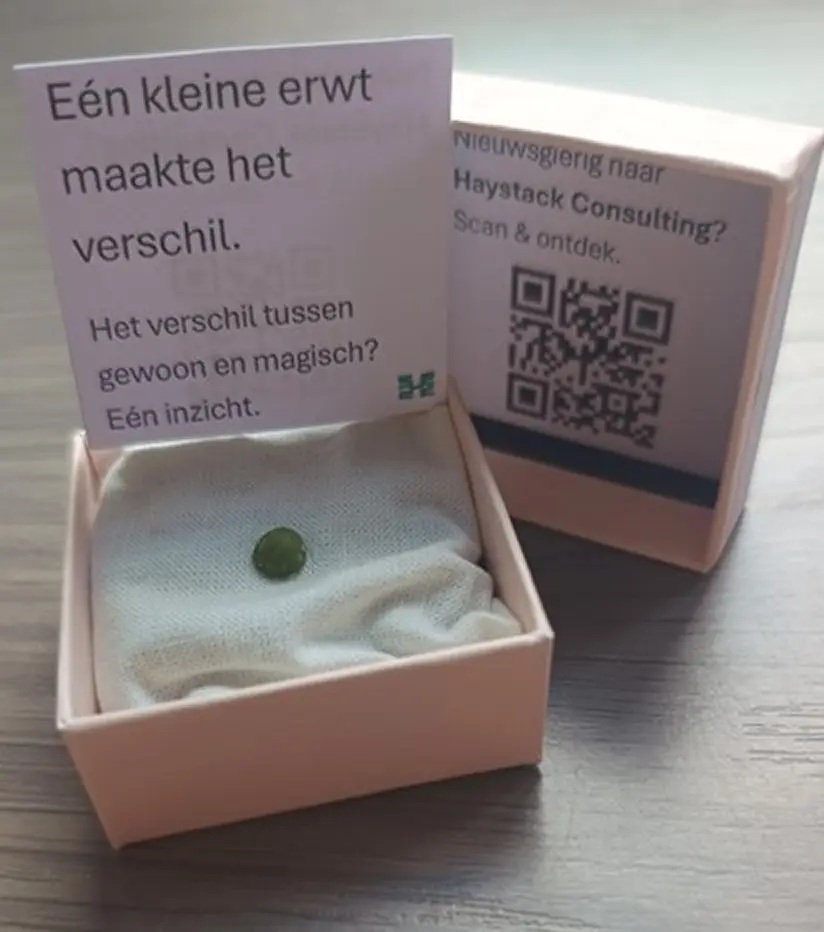 Inspired by talks we had with the Efteling, we decided to send a small gift: a single pea tucked inside a box. A playful wink to the newest fairytale in their enchanted forest: The Princess and the Pea. Because sometimes, it only takes one tiny detail to create a spark of magic.